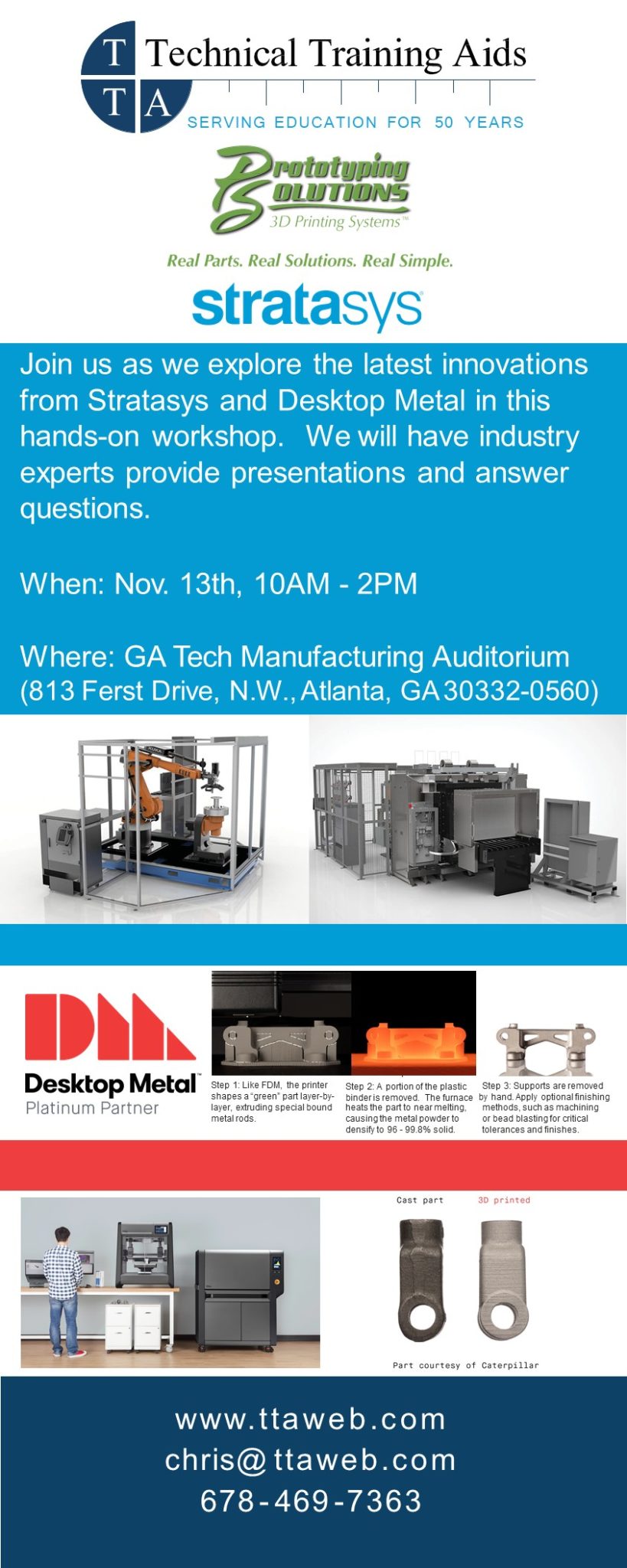 Workshop: Latest Innovations from Desktop Metal and Stratasys 3D Printing with Live Demonstrations