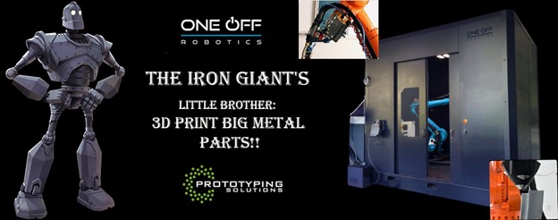 In just a few years, One-Off Robotics has positioned itself as a leader in metal 3D printing, with groundbreaking WAAM and WLAM technologies. Their systems offer an unmatched combination of flexibility, precision, and durability, making them ideal for industries ranging from aerospace to defense and automotive. Alongside their strategic partnership with Prototyping Solutions, they are pushing the boundaries of what’s possible in manufacturing, offering cutting-edge solutions to meet growing demands. As the first and only US-based provider of these advanced solutions, One-Off Robotics is not only setting the bar—they are redefining the future of manufacturing. Whether you need large-scale components or intricate, high-performance parts, One-Off Robotics, in collaboration with Prototyping Solutions, has the tools and expertise to help you succeed. Their innovative solutions, built on the foundations of strength and flexibility, prove that even the Iron Giant’s little brother can make a big impact in the world of metal additive manufacturing.